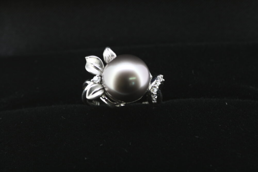 Pt900黒蝶パールの指輪のサイズ直しのご依頼をいただきました。