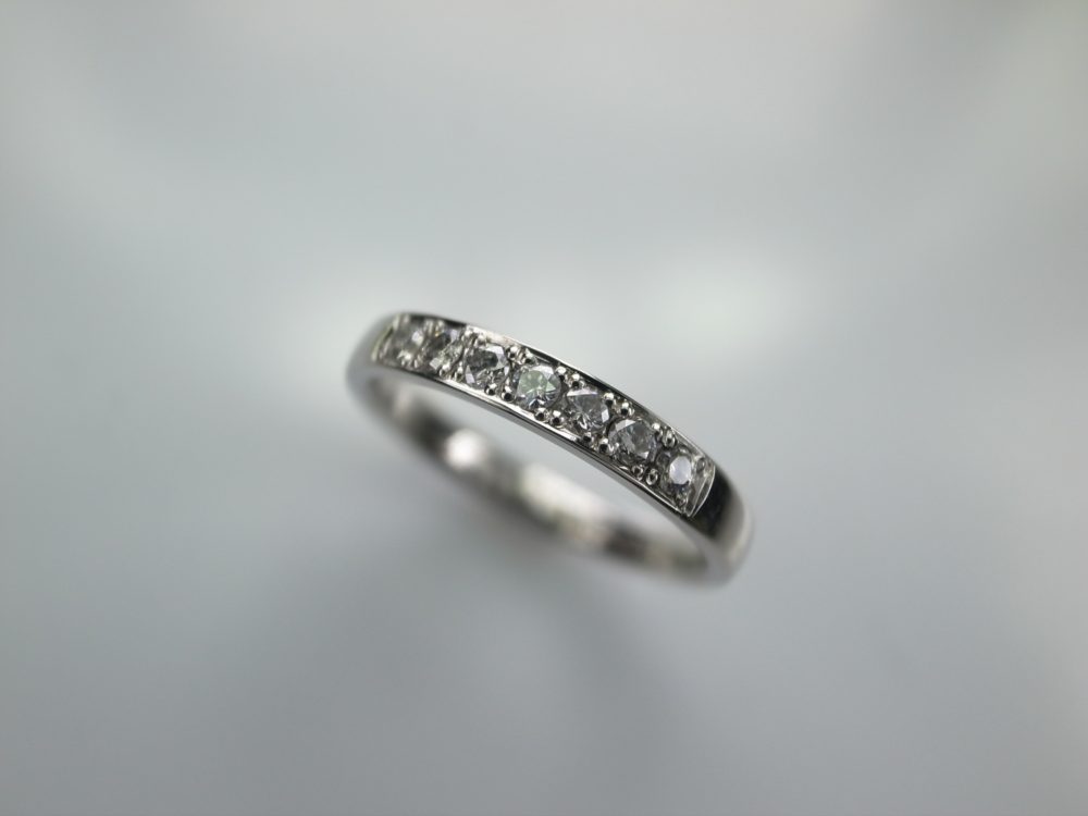 平甲丸の指輪にメレダイヤを彫留めをするハーフエタニティリングをオススメさせていただきました。